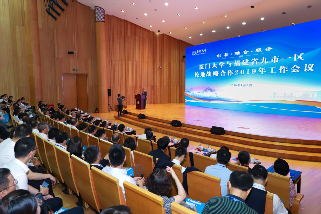 7月6日上午,厦门大学与福建省九市一区校地战略合作2019年工作会议在我校科学艺术中心召开。会议围绕“创新·融合·服务”主题,共商校地合作新思路、新经验,共谋服务新福建建设新作为、新发展。校长张荣、省人大常委会副主任邓力平分别致辞。校党委书记张彦做总结讲话。副校长叶世满主持会议。