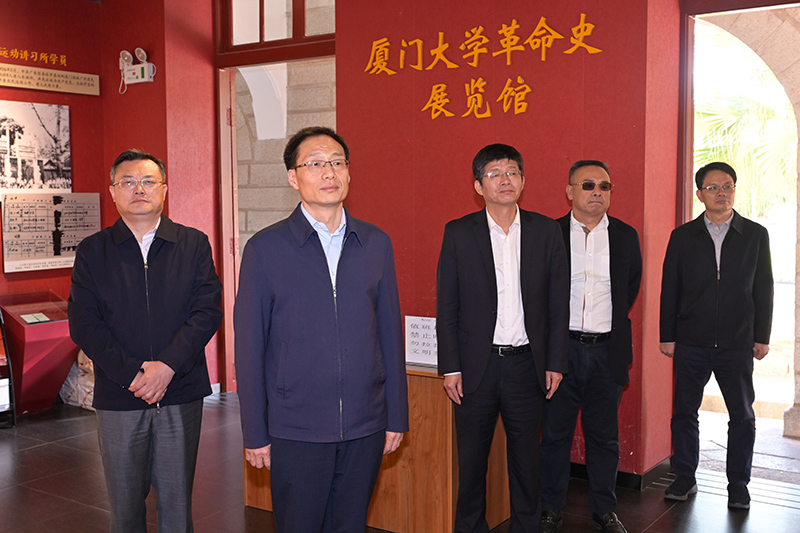 崔永辉瞻仰福建省第一个党支部——中共厦门大学支部诞生地囊萤楼,参观革命史展览馆、百年校史馆,深入了解学校办学历史和革命传统,察看厦门大学科技成果展、固体表面物理化学国家重点实验室,听取我校相关学科和项目、平台负责人的介绍,深入考察厦门大学改革创新,服务厦门经济社会发展情况。