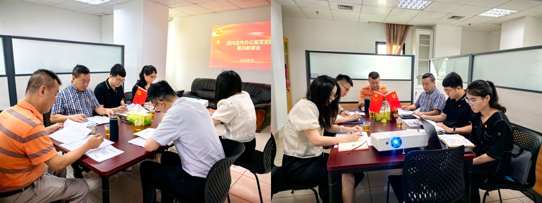 6月16日,国内合作办公室党支部召开深入贯彻中央八项规定精神学习教育警示教育会,深入学习贯彻习近平总书记关于加强党的作风建设的重要论述,通报违反中央八项规定及其实施细则精神典型案例,持续抓好以案促学、以案说纪,引导全体党员同志们深刻反思、检身正己,让心存敬畏、手握戒尺真正成为日常自觉。