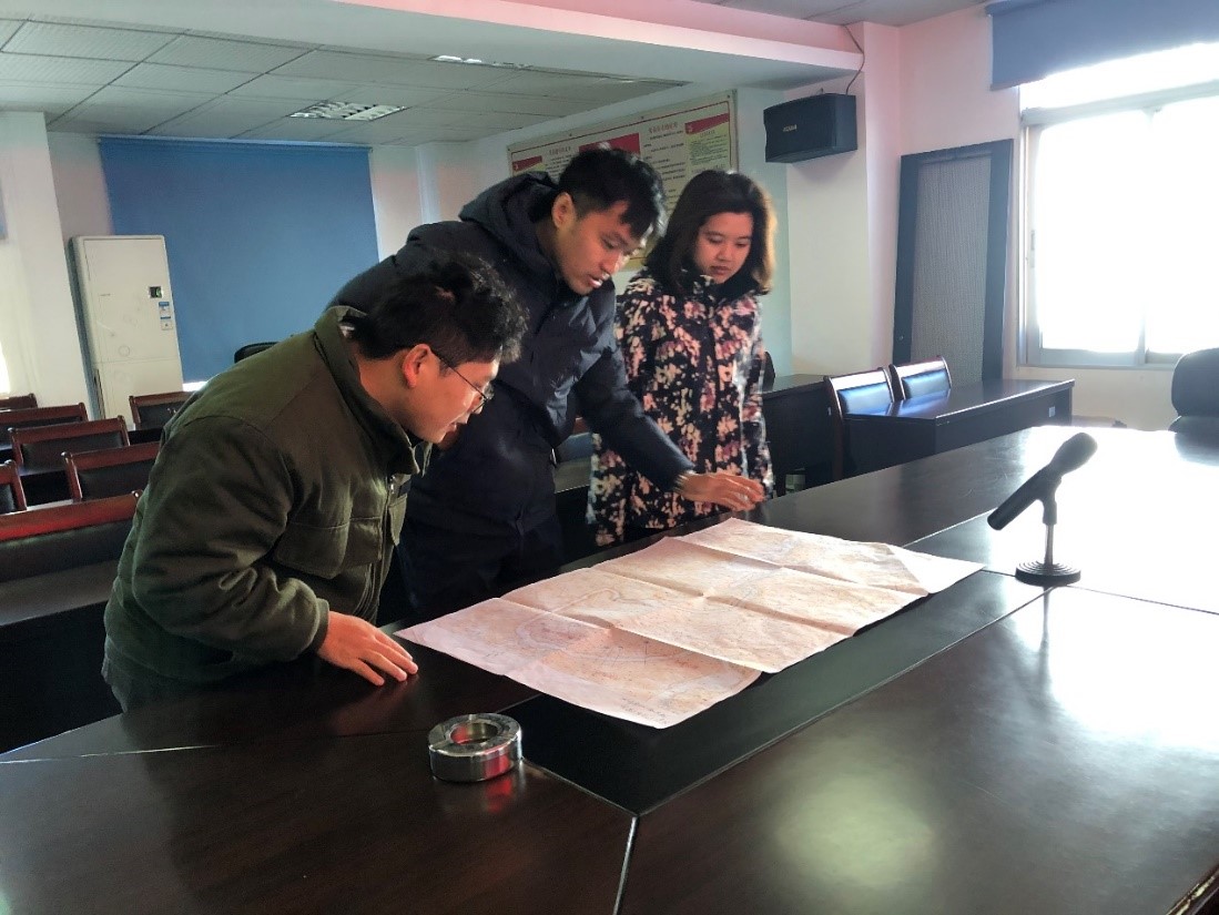 △张闻捷和同事在华安罗溪水库考古调查前研究地图