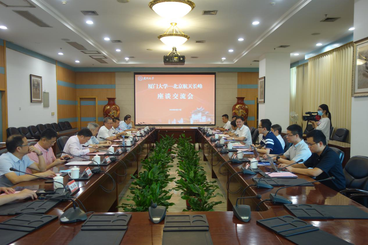 张荣向来宾介绍了我校“双一流”建设进展。他表示,厦门大学有着深厚的爱国传统,空天报国、敢为人先一直是厦大航空航天人的不懈追求。当前,学校正面向经济主战场和国家重大需求,大力推进“新工科”建设,努力培养具有创新引领性的高素质人才。学校十分愿意与航天长峰开展实质性的合作,共同为维护公共安全和社会稳定做贡献。