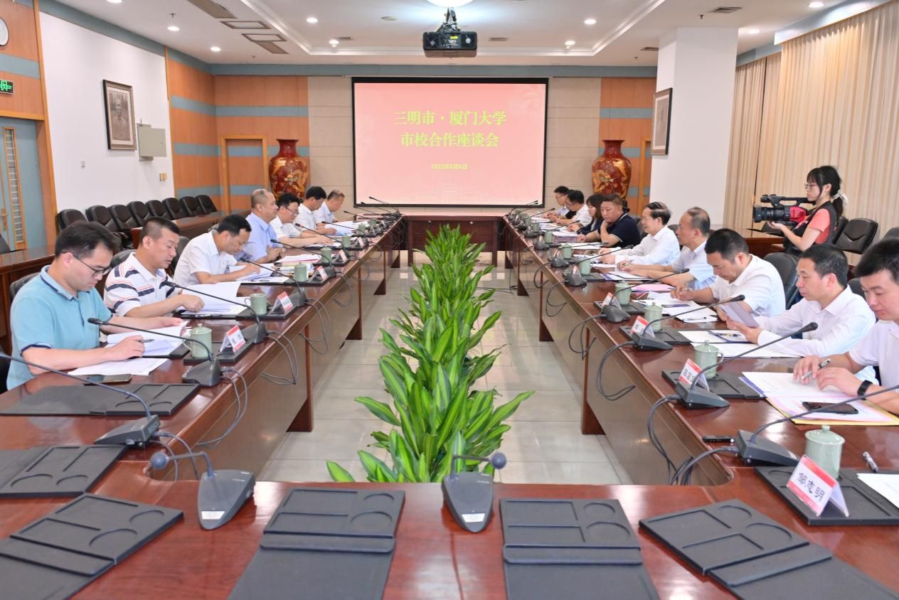 市校合作交流座谈会上,林东伟首先代表学校感谢三明市委市政府对厦门大学的关心和支持。他表示,学校与三明市之间的市校合作由来已久,情谊深厚。厦门大学作为福建省高等教育“排头兵”,始终主动融入、积极服务福建全方位高质量发展。学校将继续巩固与三明市原有合作基础,发挥优势、深化交流,助力三明老区苏区高质量发展、振兴发展,共谱校地合作新华章。