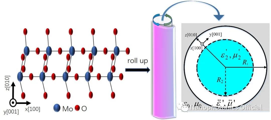 研究人员使用了一种当前热门的自然双曲材料α-MoO₃,发现当把α-MoO₃薄片卷在圆柱形光纤上时,在中红外电磁照明下的物体从视觉上消失了。