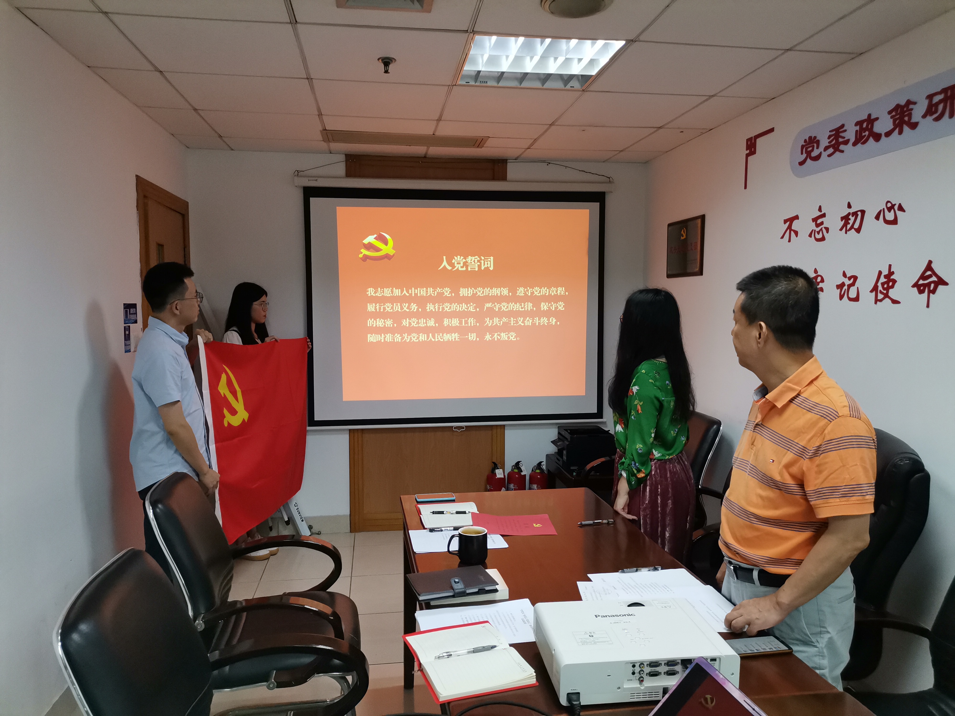 为深入学习贯彻习近平总书记在党史学习教育动员大会上重要讲话精神,5月31日,国内合作办公室党支部开展举行新党员入党宣誓仪式暨“学党史 听党话 跟党走”政治理论学习。